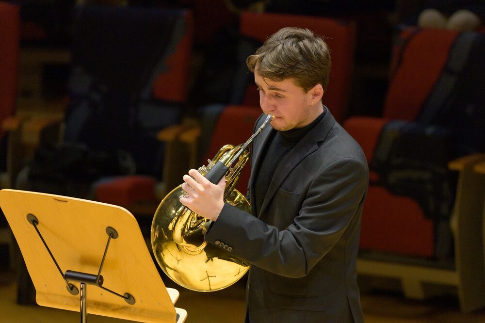 As a horn student, you will be part of a department that will prepare you for a diverse career in solo performance, chamber music performance, orchestral performance, and/or teaching. Horn students participate in solo recitals, chamber music groups, large ensembles, and specialized workshops for specific repertoire and performance preparation.